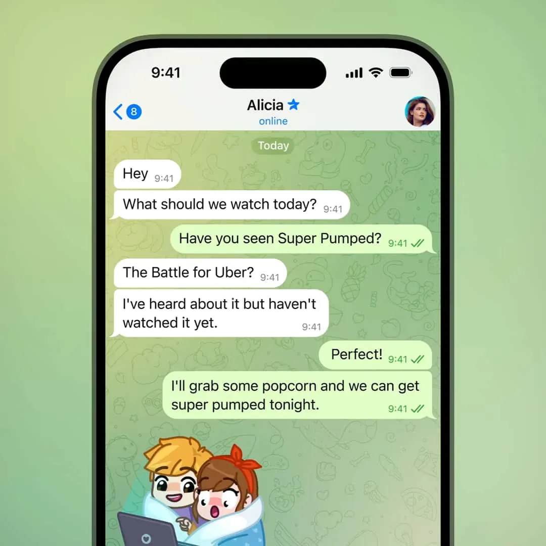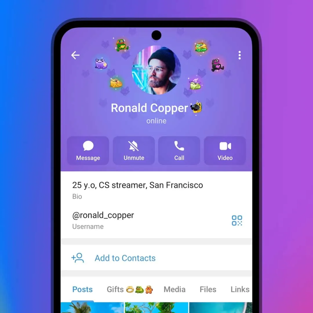 自 2021 年起,Telegram 用户可以为单个聊天应用主题。今天,我们新增了数十款基于 Telegram 礼物的动态聊天壁纸——壁纸拥有者现在可以将它们设置为任何私人聊天的自定义主题